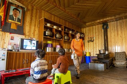 觀看圖片展的贈(zèng)科小學(xué)退休老校長(zhǎng)阿伙布老人一邊指著贈(zèng)科鄉(xiāng)安卡村的全貌圖,一邊自豪地給身邊觀展的人群說(shuō):“這是我的家鄉(xiāng),在六七十年代的時(shí)候,村里房子是沒(méi)有樓層的土木房。現(xiàn)在,村里的人居環(huán)境有了很大改善,房子也修得很漂亮??吹郊亦l(xiāng)的變化,我非常高興?!?/p>