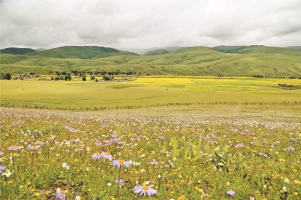 宗塔草原素有七色花海之稱,百花爭(zhēng)艷斗奇,草原上先后開出,黃、白、粉紅、等不同顏色的格?;ǎ黄孥E般地為草原定時(shí)換上盛裝,使草原芳華滿園,萬紫千紅勝似人間仙境。