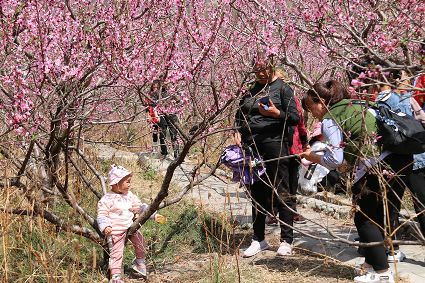 一抹抹溫暖明媚甚至跳躍著的桃紅,醉了眼簾,醉了心田。此情此景,掏出手機(jī),隨手按下快門,就是一幅絕美的春日桃花圖,想不流連忘返都難。一彎春水,一場花事,引來眾多市民、游客前來觀賞打卡,大家在桃花樹下擺著各種造型,或拍照,或拍短視頻,還有的在這醉人的花海里唱起了歌,跳起了舞,縱享春日大美時光。