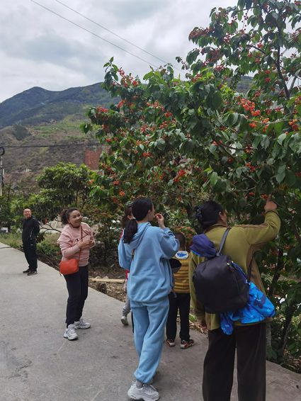 四月,櫻桃正紅,眼下有著春果第一之美譽(yù)的櫻桃已陸續(xù)成熟。走進(jìn)瀘定的村村寨寨,道路邊、院墻里、田地里,晶瑩透亮的瑪瑙紅櫻桃再次掛滿枝頭,散發(fā)出誘人的甜香,吸引了不少游客前來采摘打卡。