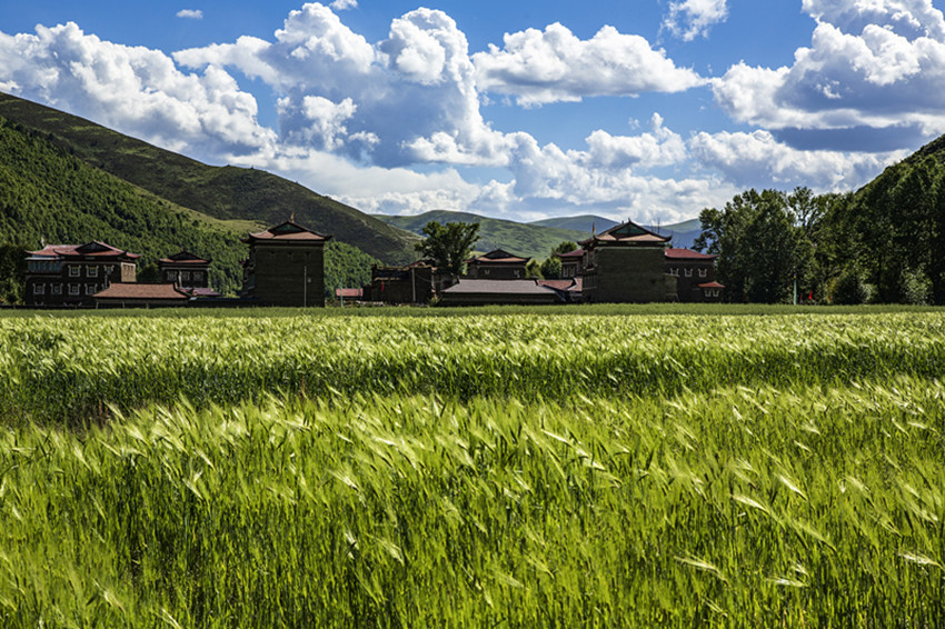 然后行走在山水之間,擁抱大自然,尋找屬于自己的“詩(shī)和遠(yuǎn)方”。油綠的青稞、小麥,散發(fā)出濃郁的田園風(fēng)味;天邊群山起伏,磅礴的氣勢(shì)瞬間感覺(jué)人在自然面前實(shí)在太渺小;帳篷點(diǎn)綴著開滿野花的牧場(chǎng),牦牛哞鳴,一片生機(jī),細(xì)細(xì)體會(huì)牧民“逐水草而居”的生存智慧......