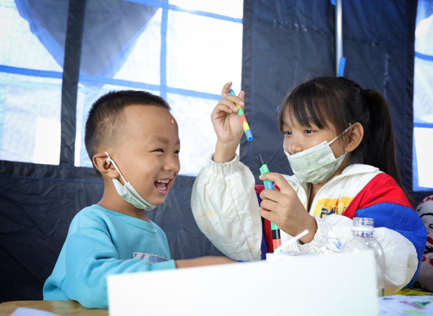 當(dāng)前,雖然余震還時(shí)有發(fā)生。但在災(zāi)區(qū)的各安置點(diǎn),在臨時(shí)搭起的帳篷里,隨處可見孩子們天真的笑臉。突如其來的災(zāi)難給他們的家園留下了印記,但不能阻擋笑容在他們臉上綻放。有孩子,有笑容,就有希望,就有美好的明天。