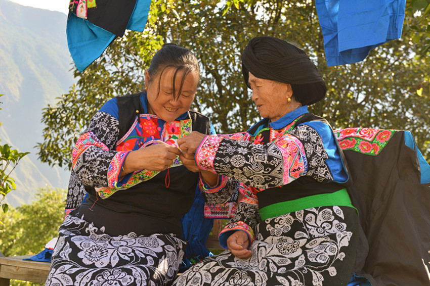今年76歲的周光芬老人,是魁多鎮(zhèn)第五代刺繡制作技藝非遺傳承人。居住在九龍縣魁多鎮(zhèn)里伍村,老人身著傳統(tǒng)的客家服飾,在自家的院壩里編織布料,溫暖的陽光照著老人。