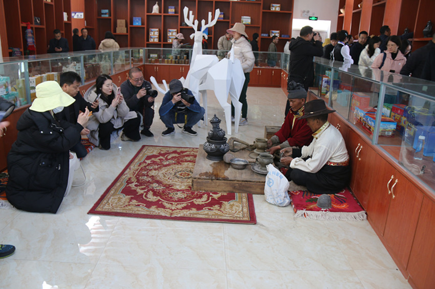 阿西土陶是稻城縣獨特的手工藝產品,國家級非遺項目,被譽為稻城亞丁“四絕”之一。在赤土鄉(xiāng)子定村,采風團了解阿西土陶非遺文化保護與利用情況。采訪年過六旬的省級非遺傳承人格里,現(xiàn)場觀看制坯、貼瓷。據(jù)介紹,這項非遺技藝已經走進校園,小朋友們用阿西土陶制作成海螺、杯子、茶壺等器具,非遺已經融入了稻城人的生活。
