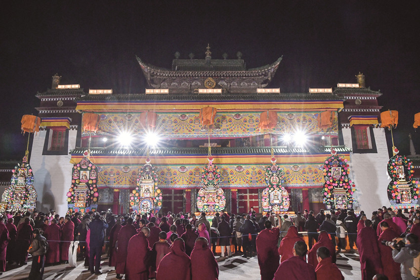 農歷正月十五,在甘肅省甘南藏族自治州夏河縣,被譽為“世界藏學府”的拉卜楞寺舉行一年一度的酥油花燈展,僧人們制作的精美酥油花作品吸引了眾多僧俗群眾和海內外游客前來觀看。