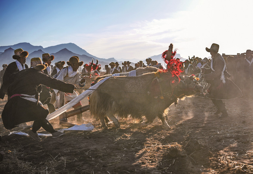 近日,西藏農(nóng)民舉行一年一度春耕大典。村民沿襲著傳承千年的春耕民俗,身著節(jié)日盛裝,手捧“切瑪”(五谷豐登斗),唱起祈愿歌,互敬青稞酒。當(dāng)鐵犁翻開土地,婦女將手中的種子撒下,祈求新的一年豐收。