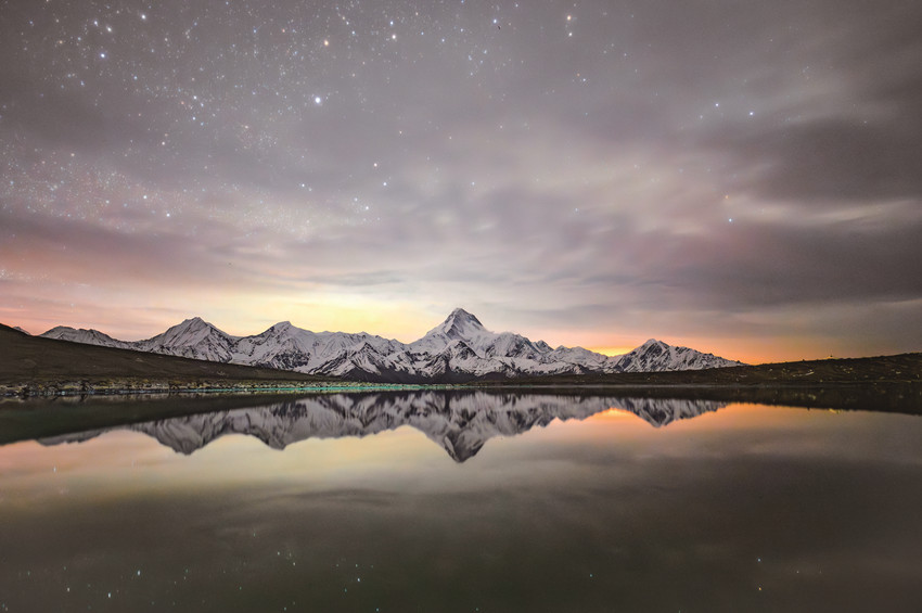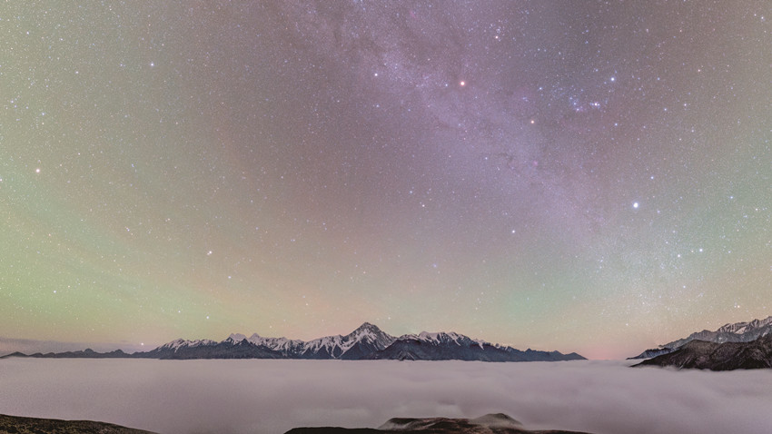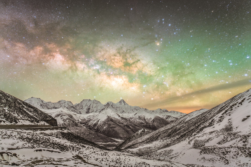 我州地廣人稀、海拔較高,光污染較少,離康定城區(qū)不遠(yuǎn)的折多山頂、子梅埡口、雅哈埡口等地,云層稀薄,空氣干燥,視野開闊,晴朗天氣下,每當(dāng)夜幕降臨,銀河肉眼清晰可見,如煙似紗,置身其中,如夢(mèng)似幻。星河像一道氣勢(shì)磅礴的瀑布、一幅色彩斑斕的油畫、一束絢麗多彩的禮花,令人贊嘆,驚艷眼球,壯美異常。