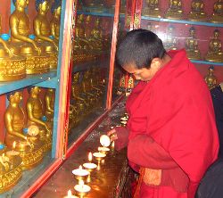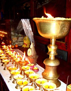 傳說藏歷十月二十五日,是藏傳佛教格魯巴(俗稱黃教)創(chuàng)始人宗喀巴大師圓寂成佛的日子。為了紀念這位杰出的宗教領袖,藏區(qū)各黃教寺廟和信徒于藏歷十月二十五日,舉行誦經(jīng)、磕頭,燈供儀式等隆重的祭祀活動,祭祀宗喀巴大師在天之靈和祈愿大師賜與善良的人們以吉祥幸福。