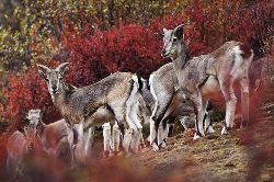 巖羊(學名:Pseudois nayaur),體型中等,形態(tài)介于野山羊與野綿羊之間。兩性具角,雄羊角粗大似牛角,但僅微向下后上方彎曲。以青草和各種灌叢枝葉為食。冬季啃食枯草。它們還常到固定的地點飲水,但到寒冷季節(jié)也可舔食冰雪。無固定獸徑和棲息場所。它們在懸崖峭壁只要有一腳之棱,便能攀登上去。一跳可達2、3米,若從高處向下更能縱身一躍10多米而不致摔傷。冬季發(fā)情交配,次年6、7月產仔,每年通常只產1仔。主要天敵是雪豹、豺、狼,以及禿鷲和金雕等大型猛禽。中國國家二級重點保護野生動物?! ?br />