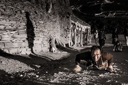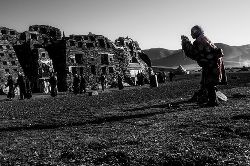 石經(jīng)城位于距石渠縣城呢呷鎮(zhèn)東北約90公里處的阿日扎鄉(xiāng)境內(nèi),坐落在雅礱江支流洛曲河西岸一處兩山相望的草原間,背靠一座平緩、渾圓的山丘,前面是一望無際的草原,由于草原極為遼闊,遠(yuǎn)遠(yuǎn)望去,整座城并不顯得特別雄偉、壯觀,但走近細(xì)看,這座用一塊塊刻滿經(jīng)文和佛像的石片、石塊在漫長(zhǎng)歲月中逐漸壘砌起來的石城,所蘊(yùn)含的厚重與蒼茫,堅(jiān)韌與神秘,讓我想起荷爾德林所說的“那些四處飄游的分散的力量,都匯聚在一個(gè)黃金般的中心”。