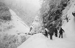 一九九七年十一月二十四日,連續(xù)多日大雪,把整個二郎山裹得嚴(yán)嚴(yán)實實,白茫茫一片。陣陣山風(fēng)吹過,大霧就像瀑布一樣,從山頂直往下翻涌傾瀉。 一大早,州交通局打冰除雪排險的干部職工就從二郎山管理站直奔山埡口。載有防滑砂的大貨車穿迷霧,繞山梁,向山頂埡口疾馳。由于氣溫太低,霧又大,車上的擋風(fēng)玻璃很快就結(jié)下了冰,路面打滑非常嚴(yán)重。前面車輛堵了起來,排險人員只好下車步行。 大霧彌漫,能見度很底,陰霾的天空又飄起了紛紛揚揚的雪花,剌骨的寒風(fēng)陣陣襲來,只聽見車蓬布在風(fēng)中“嗶剝”作響,卻看不見前面到底堵了多少車。排險人員只好相互攙扶踩著冰滑的邊路艱難地向行。好不容易來到堵在最前面的車子面前。原來是一輛載著原木的東風(fēng)牌大貨車側(cè)滑在公路上,把整個公路堵死了。 局領(lǐng)導(dǎo)當(dāng)即指揮大家用鋼釬、鐵鎬和鋤頭處理冰道,沒有撮箕,大家借來加水桶裝運冰雪……氣溫仍在急劇下降,剛從雪堆里刨出來的路,又被結(jié)起一層冰,就像地面上澆上了油,這就是冰雪道上有名的“桐油凌”。 有二位老同志不顧年老體弱,積極參與打冰除雪,一個在打冰時,被彈起的冰碴把腦門劃了一個口子,鮮血直往外冒。有人想幫他包扎,他堅決不干,自己就用手帕按住,把帽子向下拉蓋住傷口就算了。血從手帕中浸透出來,與眉毛上的冰凌結(jié)在一起。氣溫太低,冰層太厚,十字鎬每挖一下,多數(shù)情況下也就是挖下一個白點而已。不一會兒,另一位老同志已是滿頭大汗,大家勸他休息一下,他卻說:趁著現(xiàn)在雪不是太大,早點把主道上的冰雪多除點,過往二郎山的車輛就多一份安全。 排險人員的手凍紅了,刨冰雪碰傷的指頭還流著鮮血,身上蒸發(fā)的熱氣,把衣領(lǐng)口、袖子口和褲子口結(jié)成了冰,可是,誰也沒有吭一聲。 ……受堵車輛終于向前開動了。 風(fēng),越刮越猛,雪,越來越大。 防滑車在冰雪道上艱難地向前爬行著,車箱上面的職工們揮舞的洋鏟向路面撒著防滑砂。一路上風(fēng)絞雪,防滑車象一頭不聽使喚的牛,顛簸、亂竄,好不容易才來到260(二郎山最險處),對這里“桐油凌”路面進(jìn)行重點防滑處理后,防滑車又返回來,開始向山頂進(jìn)發(fā)……風(fēng)雪二郎山上打冰除雪、防滑排險,看似沒有驚天動地的壯舉,身臨其景才知其艱難辛苦。難怪當(dāng)年每每經(jīng)過二郎山冰天雪地奇險路段的車,都會向風(fēng)雪中屹立路邊的交通系統(tǒng)排險保暢通的職工們鳴笛致敬,風(fēng)雪中的那份情彌足珍貴。 川藏線上的老司機傳下來一首傷心的順口溜:“車過二郎山,如闖鬼門關(guān),萬幸不翻車,也要凍三天!”其險峻實為罕見,尤其是途經(jīng)二郎山260(公路公樁)處,曾被淡虎色變的人稱為“鬼招手”的險路段。 1983年1月3日,有著安全行車44萬公里記錄的一位駕駛員開著輛嶄新的東風(fēng)牌貨車,同行還有兩名職工,夜行二郎山,在彌天大霧中神秘地“失蹤”了。十五天后,搜山的人才用望遠(yuǎn)鏡看到260公里路樁處的山崖下,有一塊汽車破篷布掛在樹枝,猶如招魂的凄厲幌幡在冷風(fēng)中招搖晃動。鋼纜繩吊著搜山的人下到崖下400米深處的谷底。扒開一座座雪堆,叫人汗毛倒豎:雪堆下,盡是廢大梁、爛車廂、銹車頭和支離破碎的汽車,足有一個汽車連!一輛不知埋了多久的卡車廂里牛肉已腐爛,駕駛室里坐著三具發(fā)黑的僵尸……其狀慘不忍睹!