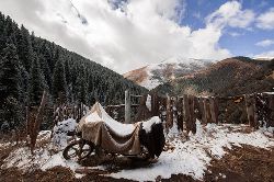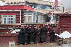 冬季的色達(dá),常常被皚皚白雪覆蓋,民居、帳篷、寺院、經(jīng)幡、牦牛點綴期間,美麗迷人。