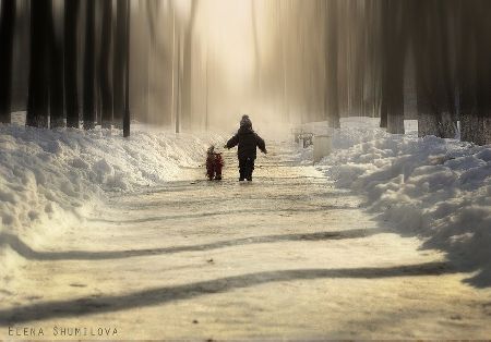兩個毫不知情的小男孩兒無疑為這種電影畫面般精美的風(fēng)景上添上了最美的一筆。無論是在一條泥濘的小路,還是陰冷的森林,或是在室內(nèi)。Elena捕捉到了那束最完美的光線,正巧照射在小男孩兒的身上,如陰雨天突 然出現(xiàn)的太陽,一切都變得不再陰郁而充滿陽光。Elena說,“我比較喜歡自然光,無論是在室內(nèi)還是室外,我喜歡各種各樣的光線環(huán)境,街燈,蠟燭,煙霧, 雨天,雪天,任何一種都能給予畫面更深度的視覺沖擊與意義。