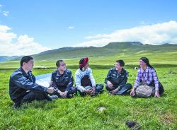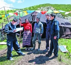 新龍縣拉日馬牧區(qū)派出所,地處海拔3768米的山塬草地,全所干警7人,負(fù)責(zé)管理方圓1527.19平方公里內(nèi)7個行政牧村、53個牧業(yè)小組、1269戶共計5600多人的治安秩序。這里遠(yuǎn)離縣城,卻和周邊理塘、雅江、道孚三縣牧區(qū)相接,社會狀況復(fù)雜、自然環(huán)境惡劣,轄區(qū)內(nèi)大多數(shù)牧場靠騎馬、步行跋涉才能到達(dá)。多年來,全所干警以艱苦為榮,與牧民一家親,并用實實在在的工作業(yè)績,徹底改變了過去突出存在的打架斗毆、交通混亂和治安案件時發(fā)等問題。牧區(qū)的和諧穩(wěn)定,牧民的安居樂業(yè),贏得了牧民群眾的交口稱贊。(紫夫/文 扎西澤仁/圖)