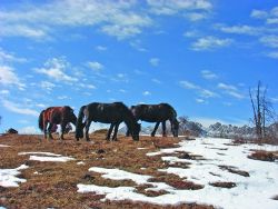 在高原,藍(lán)天、白云、白雪、冬樹、駿馬、無際曠野等都是美物,而這些,在2006年12月的某個(gè)雪后天晴的日子齊聚馬鞍山頂,讓我們飽享了一餐視覺盛宴,并印象深刻。