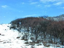 似乎是在快接近馬鞍山山脊的時(shí)候,坡度才開始變小的。這時(shí),積雪也比較多了。