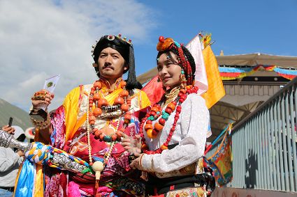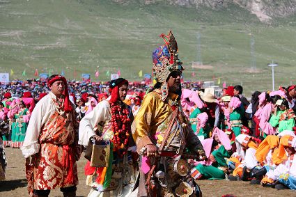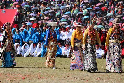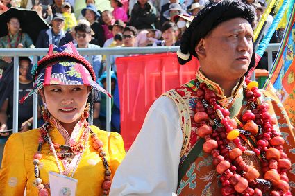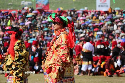 于是,年復(fù)一年,“漢子”與“花”兒們便挺拔、綻放在漢語表達(dá)的一個極點之上,被玄想,被渴望。對遠(yuǎn)道而來的人們或是世代居于高原的子民而言,康巴漢子與康巴之花不僅僅是美的化身,通過康巴漢子與康巴之花的評比,人們在尋找一個早已失落卻又天然渾成的世界。