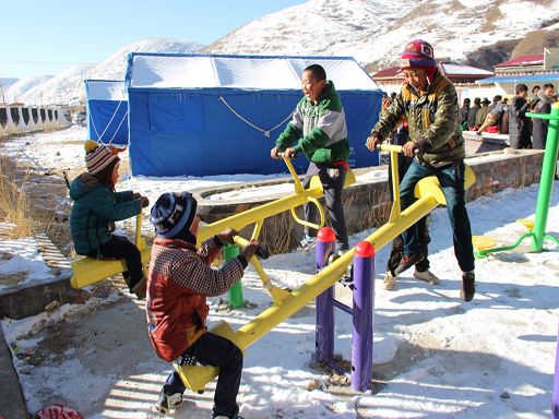 陽(yáng)光普照在江巴村活動(dòng)中心,積雪還未完全融化,室外仍然寒氣逼人。6歲的卓呷同伙伴們一邊在活動(dòng)室外玩健身器材,一邊等待哥哥姐姐們的文藝演出。