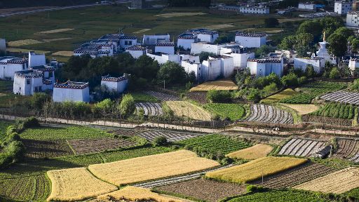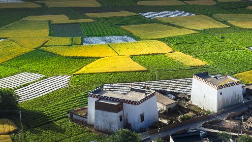 清晨,瓦藍(lán)瓦藍(lán)的天空云霧繚繞,周圍的景物一片朦朧,就好像童話里的仙境,一會(huì)兒,太陽(yáng)從東邊冉冉升起,霧也漸漸消失,村子里屋頂上飄著裊裊煨桑的煙子,我站在山岡上從高處向下俯望,只見高山峽谷之中,層層翠綠的梯田簇?fù)碇l(xiāng)城特有的白藏房,山下的田野,就像一片金色的海洋,將秀麗的田園裝扮得更加如詩(shī)如畫。一陣晨風(fēng)吹過(guò),麥田上蕩起了一道道金色的波紋,遠(yuǎn)處傳來(lái)了畫眉鳥的歌聲,我被眼前的一切迷住了,仿佛一切都靜止了,她讓我的夢(mèng)從這里開始。