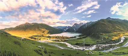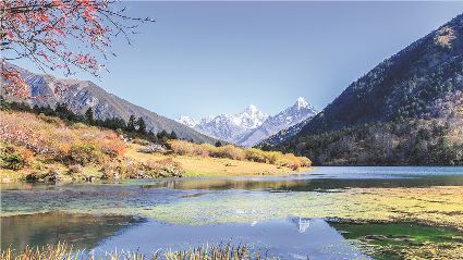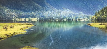 一天之中,數(shù)清晨和傍晚的海子最美,晨光中,湖水猶如鏡面般倒映著周圍的景物,天色漸漸亮了,周圍的景物也在 “鏡子”中漸漸清晰起來,特別是那些雪山下的海子,當(dāng)太陽(yáng)給雪山鍍上一層玫瑰金,倒影更美。傍晚,落日的余暉灑在海子和它周圍的景物上,又是另一種美,天上再有幾縷晚霞,更絕。四季里,就要看秋天的海子,因?yàn)檫@時(shí)海子周圍的景色是最美的,紅葉、黃葉、綠葉相間,便襯托得海子更美。