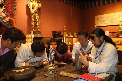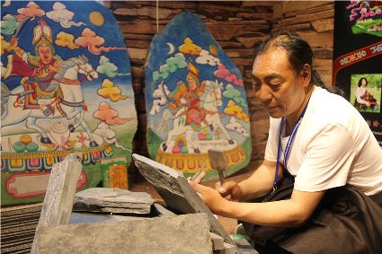 本屆非遺節(jié)期間,我州特色展館向游客展示了格薩爾彩繪石刻、藏族金屬鍛造技藝、藏文書法、噶瑪嘎孜畫派唐卡、阿西土陶燒制技藝、藏族牛羊毛編織技藝,南派藏醫(yī)藥等國家級、省級非遺項(xiàng)目。在歷時(shí)9天的活動中,我州的非物質(zhì)文化遺產(chǎn)傳承人帶來了數(shù)百件非遺手工藝精品。大量的手工藝商品聚集展館的展示區(qū),供參觀者挑選,有些非遺傳承人還在現(xiàn)場為顧客現(xiàn)場制作作品,向廣大參觀者展示了民族手工藝的制作流程。