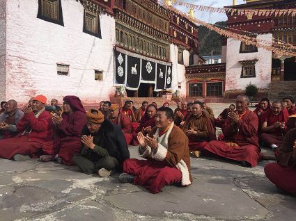 當宣講組一行來到郭沙寺時,寺廟僧人們早已迫不及待的等候在寺廟外。“聽說你們今天要來,我們全寺上下都很高興、很期待?!彼聫R堪布甲它激動地說。