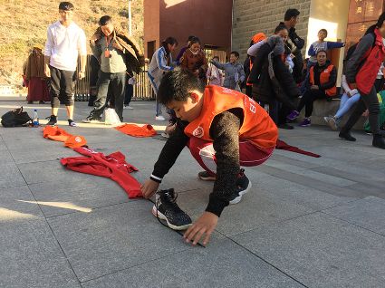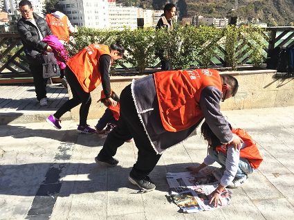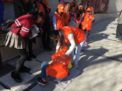 在瀘定橋上,小記者們向游客講述當年“紅軍飛奪瀘定橋”的英雄壯舉。在瀘定橋河西長廊,帶隊老師組織小記者和家長們進行了“向目標前進”的親子互動游戲,游戲對家長和孩子的默契程度進行了考驗,鍛煉了他們的智力和體力。在瀘定紅軍紀念館廣場上,小記者們按照帶隊老師的要求進行拼接游戲,完成“小小紅軍支援前線”,獲勝的小組獲得了獎品。游戲結束后,小記者們在講解人員的帶領下參觀了瀘定紅軍紀念館,了解了許多相關的歷史知識。同時,小記者們以組為單位開展了“講紅色故事”活動,講解內(nèi)容涉及瀘定橋的修建、瀘定橋勇士英勇犧牲的故事等,讓小記者進一步了解到了瀘定縣的紅色歷史文化。