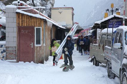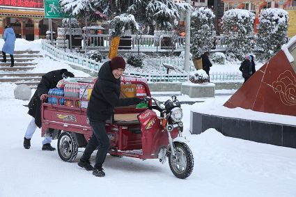 “風雨送春歸,飛雪迎春到。已是懸崖百丈冰,猶有花枝俏?!?月4日傍晚,大片大片的雪花,從昏暗的天空中紛紛揚揚飄落下來。霎時間,山川、河流、城市,全都籠罩在白蒙蒙的大雪之中。黃昏的雪,下得深切切的,好象有千絲萬縷的情緒似的,又像海水一般洶涌,能夠淹沒一切,還有一絲揭開藏頭露尾般的裸露感。雪花形態(tài)萬千、晶瑩透亮,好象出征的戰(zhàn)士,披著銀色的盔甲,又像是一片片白色的戰(zhàn)帆在遠航…… 落光了葉子的柳樹上,掛滿了毛茸茸、亮晶晶的銀條兒;冬夏常青的松樹和柏樹,堆滿了蓬松松、沉甸甸的雪球。那一片雪花在空中舞動著各種姿勢,或飛翔,或盤旋,或直直地快速墜落,鋪落在地上?!昂鋈缫灰勾猴L來,千樹萬樹梨花開”——這是雪的燦爛;一場瑞雪,扮美了康定,年味籠罩的康定城,嫵媚妖嬈。無論是背水姑娘、有著年味兒的將軍橋,還是大紅燈籠高高掛的康定門,都在雪后別有一番景致。與美景合影、和朋友玩雪都是最佳選擇。在風雪中,交警不畏嚴寒默默堅守崗位 ,指揮交通疏堵保暢。他們的身影在皚皚風雪路上站成一道道最美的風景,溫暖了康定。從早上六點開始,康定的環(huán)衛(wèi)工就迎著刺骨的寒風,開始了除冰雪保通暢的行動,在積雪覆蓋的康定城,早起的商販樂呵呵地做起了買賣;民工迎著雪后的寒風出門務工,他們是最可敬的人。