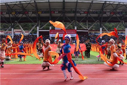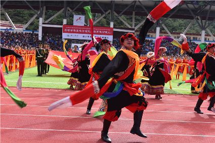 “本屆少數(shù)民族傳統(tǒng)體育運(yùn)動(dòng)會(huì)的會(huì)徽以格薩爾王賽馬登位為基本形象,由字母‘SC’組成的騎手代表‘四川’,數(shù)字‘15’組成了昂揚(yáng)奔騰的‘馬’為主體的形象,代表‘15屆民運(yùn)會(huì)’。這既有藏民族特色,又顯得美觀大方?!痹陂_幕式現(xiàn)場(chǎng),來(lái)自杭州的陳琳興致勃勃地說。