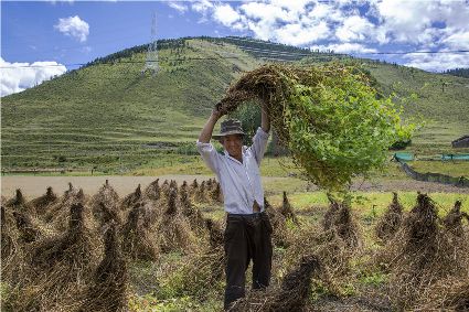 康定市姑咱鎮(zhèn)達(dá)杠村村民李翠軍一邊采摘著蘋果,一邊喜悅地告訴記者,達(dá)杠所產(chǎn)的蘋果個(gè)頭大、色澤好、吃味好、耐儲(chǔ)藏,到目前,全村蘋果種植面積800多畝,去年蘋果產(chǎn)量160萬(wàn)斤,今年雨水好,蘋果產(chǎn)量將猛增到200萬(wàn)斤以上。目前,村子里蘋果種植大戶家庭年收入過(guò)10萬(wàn)元的就有20多戶。康定市將達(dá)杠村打造成川藏觀光農(nóng)業(yè)第一村。按照規(guī)劃,村里會(huì)進(jìn)一步擴(kuò)大蘋果種植面積,以蘋果利用為核心,發(fā)展“春賞花、夏攝影、秋摘果、冬體驗(yàn)”四季觀光農(nóng)業(yè)產(chǎn)業(yè)。五谷豐登六畜興旺,甘孜高原共慶豐收。農(nóng)民豐收節(jié),它既是億萬(wàn)農(nóng)民慶豐收、曬豐收的節(jié)日,也是全社會(huì)享豐收、助增收的節(jié)日;既寄托著農(nóng)民的追求、農(nóng)民的希冀,也承載著全體中華兒女的深情與追憶;中國(guó)農(nóng)民豐收節(jié),農(nóng)牧民收獲的不只是甜蜜蜜的果實(shí),鼓起的不只是沉甸甸的荷包,更是滿滿的榮譽(yù)感、幸福感、獲得感!