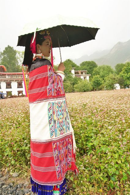 比賽開始不久,現(xiàn)場(chǎng)下起了小雨,但絲毫沒有影響熱烈氣氛。臺(tái)上的佳麗們,略施粉黛,穿著承載著嘉絨風(fēng)情文化的民族盛裝,自我介紹,優(yōu)雅展示。臺(tái)下,則是鄉(xiāng)民齊聚,熱情高漲。大家紛紛到場(chǎng),為佳麗們加油助威。據(jù)介紹,丹巴出美女始于漢代的東女國(guó)時(shí)期。古時(shí)每年農(nóng)作物收獲的時(shí)節(jié),丹巴各村各寨都要舉行盛大的選美和祭祀活動(dòng)。