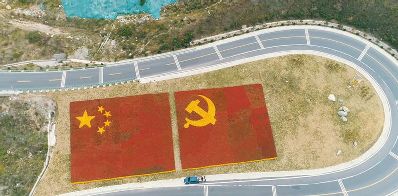 7月1日是中國共產(chǎn)黨98周歲的生日。四川甘孜藏族自治州瀘定縣用23萬多株鮮花,在雅康高速路瀘定連接線出口處擺了鮮紅的黨旗、國旗造型,以此表達(dá)對(duì)黨的感情。