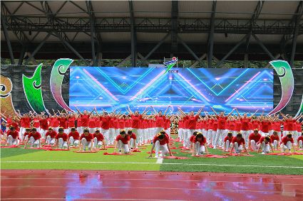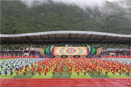 運動甘孜,將現代體育與傳統(tǒng)體育完美鏈接,讓全民健康戰(zhàn)略目標與多彩的甘孜民族文化水乳交融。舞韻甘孜,傳承甘孜民間傳統(tǒng)技藝,創(chuàng)新甘孜民間藝術。奮進甘孜,吹響時代集結號,同心鑄造中國夢;激情甘孜,將信念舉過頭頂,將大美鐫刻天地……。昨(22)日上午,甘孜州第三屆運動會在康定北門體育場盛大開幕。來自全州18個縣(市)和海螺溝景區(qū)管理局、亞丁景區(qū)管理局各行業(yè)、各條戰(zhàn)線的20支隊伍近1300名運動員及各界嘉賓和群眾齊聚康定,共襄一場規(guī)??涨暗捏w育盛會,共慶中華人民共和國70華誕。