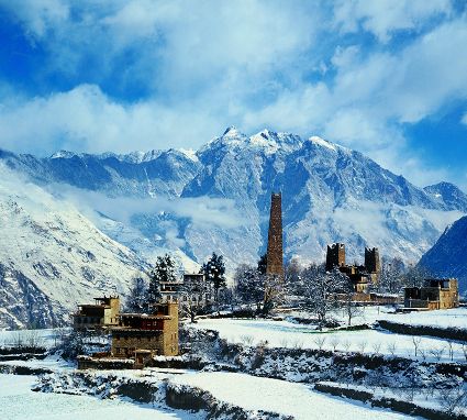 白雪皚皚,窗明幾凈,陽(yáng)光從高山傾瀉而出。丹巴正沐浴著冬日的陽(yáng)光,一幢幢外形美觀,風(fēng)格統(tǒng)一的寨房依著起伏的山勢(shì)迤儷而建,高高低低,錯(cuò)落有致,與周圍清澈的溪流,皚皚的雪峰,構(gòu)成一幅田園牧歌式的優(yōu)美的鄉(xiāng)村畫卷。