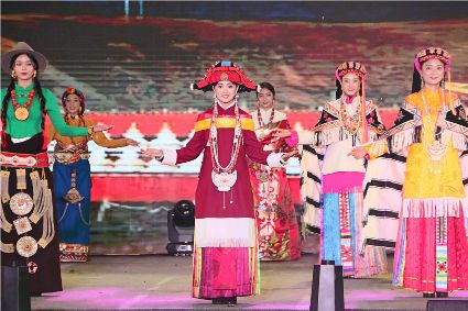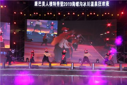 11月21日晚,康巴美人模特秀暨海螺溝冰川溫泉狂歡夜在神湯溫泉中心火熱上演,50名有著“東方美人”美譽(yù)的康巴姑娘和有著“格薩爾王”體魄的康巴漢子伴著原生態(tài)牧歌依次登臺(tái)亮相,率先開(kāi)啟溫泉T臺(tái)服飾展演大幕。隨后,《Fashion Girl》、ViVi時(shí)尚舞團(tuán)、《甘孜踢踏舞》、魔方搖滾樂(lè)團(tuán)、《康定情歌》······中西合璧、形式多樣、精彩紛呈的節(jié)目陸續(xù)上演,“最炫民族風(fēng)”的演出燥熱夢(mèng)幻舞臺(tái),“冰與火”的狂歡夜深受廣大現(xiàn)場(chǎng)觀眾的喜愛(ài)。圖為活動(dòng)現(xiàn)場(chǎng)。