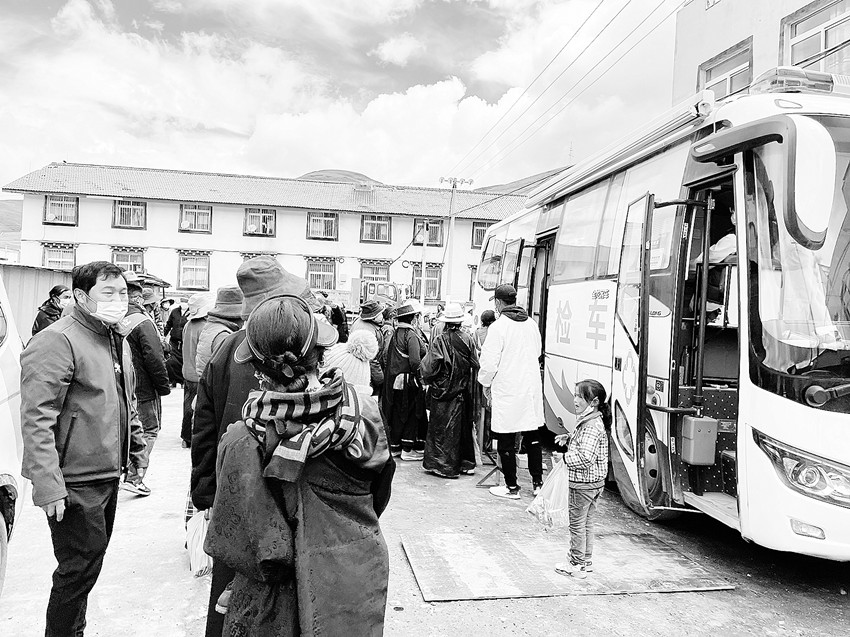 “你看那邊門巴又來了,這次要讓阿媽好好檢查一下。”措姆看著遠處色達縣衛(wèi)生健康局組織的送醫(yī)下鄉(xiāng)活動設立的站點激動地喊妹妹快點,把阿媽扶出來。