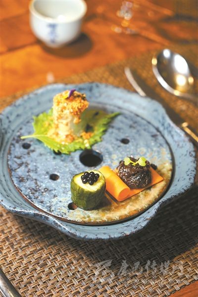 “如果狀態(tài)好的時(shí)候,我一小時(shí)就能設(shè)計(jì)出整張新菜單。”雅韻軒主理人勇哥說。這是廣州素食消費(fèi)人均最高的餐廳,達(dá)到300多元。他說,一小時(shí)的迅速來源于平日的積累,他一年里有大量時(shí)間在鄉(xiāng)間與深山,只為了發(fā)現(xiàn)更多的新食材。比如最近菜單上使用到的野生紫百合正是他在貴州與農(nóng)民聊天時(shí)聊出來的食材,比常規(guī)的白百合,野百合要更粉、更有質(zhì)感與厚度,它的花青素含量頗高,抗氧化效果佳。而來自臺(tái)灣地區(qū)的柑樹子本身既苦又酸,被他用來腌制以后反而生發(fā)了醬香味,如同黃豆醬一般,當(dāng)?shù)赝ǔS盟鼇碚糌i手或者放入粥里。勇哥將它用到素菜之中。