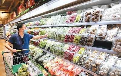 圖為7月9日,消費(fèi)者在江蘇省連云港市連云區(qū)海棠路一家超市購(gòu)物。