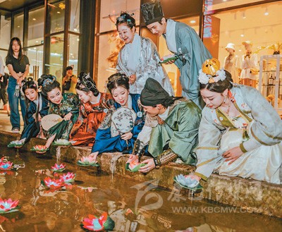 端午假期,在安徽蕪湖古城上演的漢服秀吸引游客駐足觀看。