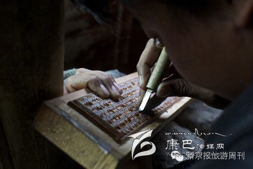 白玉縣,白玉寺,農(nóng)牧民正在雕刻大藏經(jīng)印版。