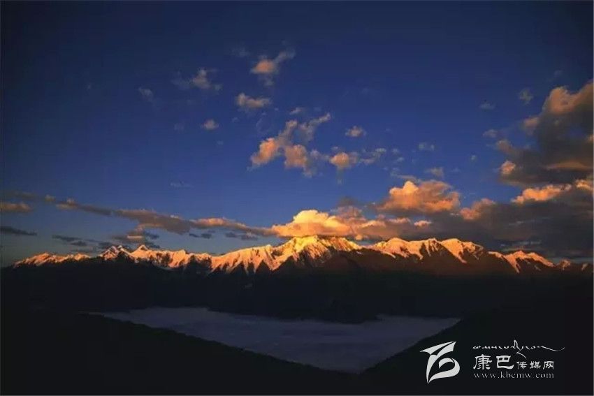 在日出日落的時(shí)候,朝陽(yáng)與晚霞撒在貢嘎山峰上,被白雪覆蓋的部分也好似化成了霞光,耀眼而壯麗。