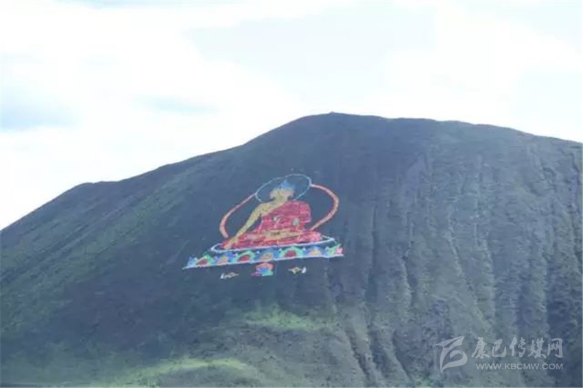 看,佛主正在向我們微笑,這尊巨大的佛像是由然梯寺的活佛使用4萬根經(jīng)幡,在沒有使用任何輔助工具的情況下花費一個月的時間創(chuàng)作而成。每當(dāng)風(fēng)吹過,大佛就會隨風(fēng)飄舞。就如同在向四面八方散發(fā)佛光一樣。