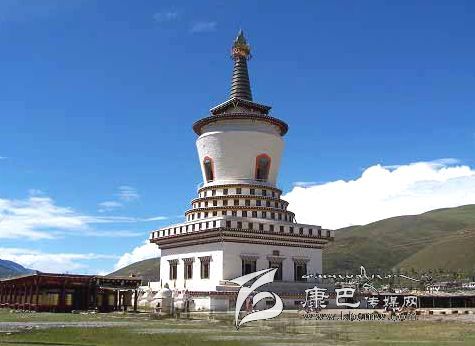 是十世班禪大師生前選起址并題名而建。是五教合一的佛塔,隨著經(jīng)濟的發(fā)展,塔的四周陸續(xù)建造了一批轉經(jīng)筒,許多信教群眾朝夕頌經(jīng)祈禱。