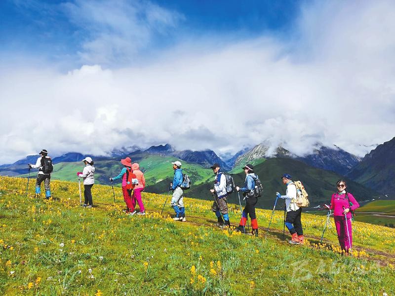 本網(wǎng)訊 8月2日,來(lái)自全國(guó)各地的游客在理塘縣格聶景區(qū),徒步體驗(yàn)格聶神山秘境之旅。