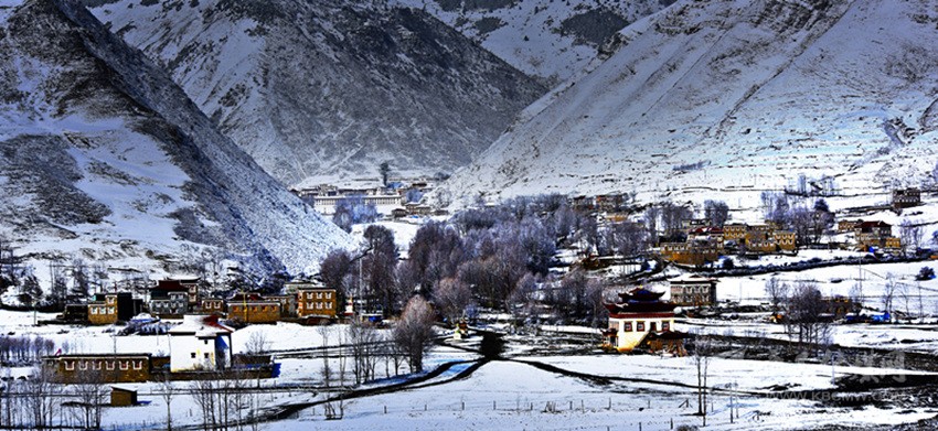 這個季節(jié)進入德格,在途中放眼望去,窗外一片白雪茫茫,雪花覆蓋著道路,覆蓋著印經院、新路海,覆蓋著德格的樹木與秋草。