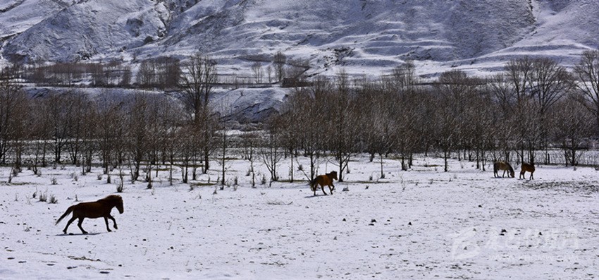 素裝銀裹的美景,不畏嚴寒的馬匹尋覓著美食,遠處的山峰被云霧籠罩,多了一份彌蒙美,這還是我們印象中的新都橋嗎?