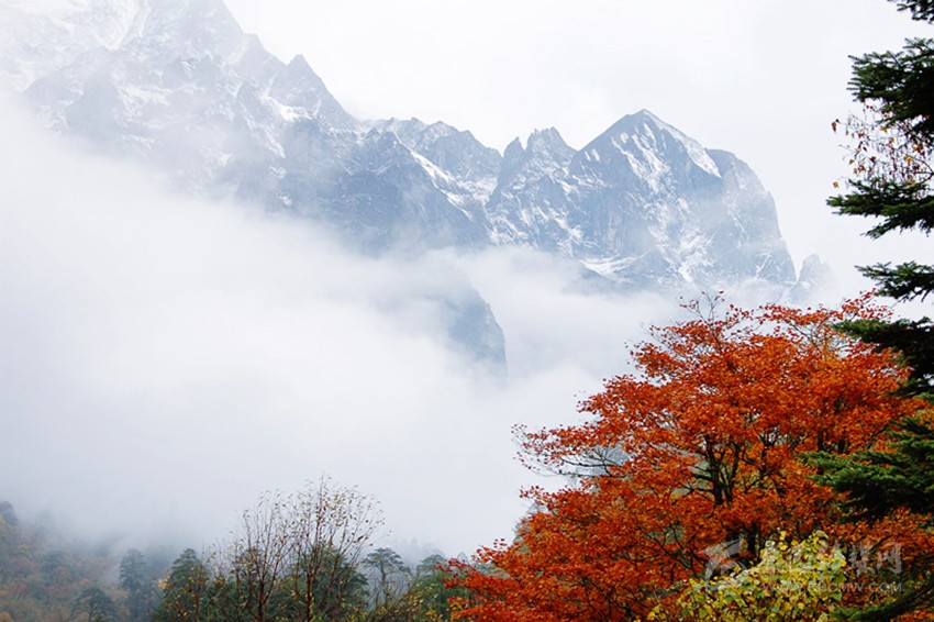 海螺溝地處橫斷山系的核心地帶,境內(nèi)延綿著眾多終年積雪、冰清玉潔的雪山。貢嘎山以雄渾的身軀屹立于香格里拉腹地,海拔7556米,被譽(yù)為“蜀山之王”,為橫斷山系的主峰,周圍林立著45座海拔6000米以上、100余座海拔5000米以上的冰峰、雪山,是世界上距離特大城市最近的極高山群。極目遠(yuǎn)眺,群峰簇?fù)?,貢嘎山主峰宛如一座巨大的金字塔,巍峨地屹立于群峰之巔,高大險(xiǎn)峻、氣勢(shì)磅礴。
