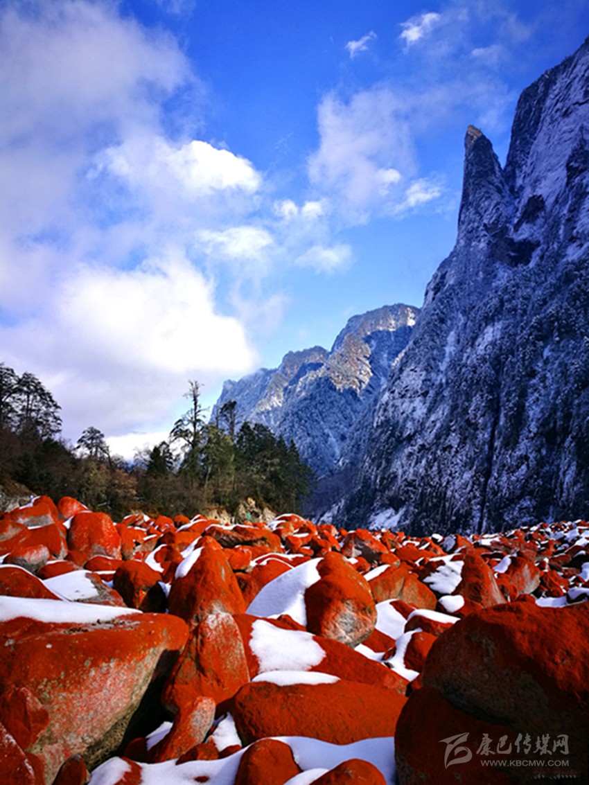 位于貢嘎山腳下綿延20多公里的紅石灘,更是與雪凇形成了強(qiáng)烈的視覺(jué)對(duì)比。燕子溝紅石歷經(jīng)冰川融水的沖擊,從遠(yuǎn)處望去,愈顯鮮艷和壯麗。據(jù)燕子溝風(fēng)景區(qū)工作人員介紹,紅石只能在特定的環(huán)境中生存,它對(duì)生存環(huán)境如海拔高度、溫度、濕度、空氣純凈度及日照條件等要求極為苛刻。燕子溝景區(qū)紅石灘自海拔2100米以上,一直到貢嘎山主峰腳下,綿延近20公里,好似一張紅地毯從天而降!就規(guī)模、密度以及顏色鮮艷度來(lái)說(shuō),幾乎無(wú)人能及,曾有專家稱燕子溝景區(qū)紅石灘為世界紅石公園。