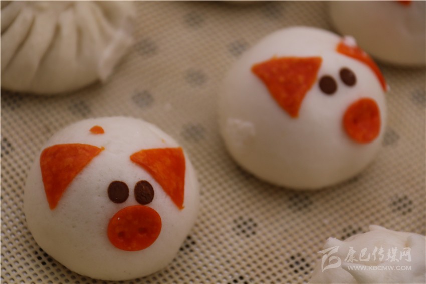“這個包子也長得太可愛了吧!”記者順著旁邊的驚呼聲看去,五歲的肖紅拿著一個做成小豬樣的包子對著她奶奶說。趕緊走近店里,記者也來了份兒奶黃餡兒的卡通小豬包子,一口咬下,奶黃順著缺了的口子流出來,趕緊吸了一口,甜甜的味道瞬間在舌尖化開。為了滿足記者的好奇心,老板介紹說:“將面團捏好搟薄,再包入餡,收口朝下,像包包子那樣捏好口,捏出有點像豬的型狀,再撕一點黃色面團做個豬鼻子,用一根筷子按下去成兩個鼻孔,再捏兩只耳朵和一根尾巴,準備些黑芝麻,做眼晴,拿根筷子點點水沾一個芝麻放在豬身上,可愛的卡通小豬包就做好了?!钡赇伹皵D滿了小朋友,老板告訴記者:“這種卡通包子之所以受小朋友的喜歡不僅是因為其可愛的卡通外表,而且我們所有的卡通包子餡兒都是甜的。我們精準定位,投孩子們所好,取得的成效還不錯。這次來參加美食節(jié),只帶來了小豬和刺猬兩種卡通形象的包子,賣得挺好,準備在接下來的幾天將小猴子等卡通形象的包子也帶過來?!?/p>