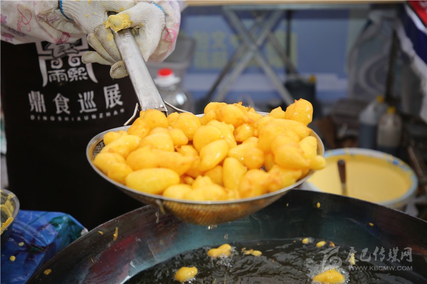 要說美食節(jié)最炫酷的店鋪,那非“印度飛餅”莫屬了。記者穿過層層圍觀的人群,點了一份菠蘿飛餅。只見廚師將捏好的面團在案板上揉了幾下,便捏緊面餅一端按順時針方向轉(zhuǎn)動,手里的面餅越轉(zhuǎn)越大,越轉(zhuǎn)越薄,幾近透明,接著就是放餡料,稍做煎炸,切割裝盤,短短一分鐘內(nèi),一氣呵成。記者接過盤,咬下一口,“喀嚓”一聲,再一口就吃到了菠蘿的清香,外層淺黃松脆,內(nèi)層綿軟白皙,略帶甜味,好一個外脆內(nèi)嫩啊!嚼起來層次豐富,一軟一脆,口感對比強烈,嚼過之后,齒頰留芳。當(dāng)脆餅撞上菠蘿的清香,就像在夏天突然掉進一個水池,清爽又驚喜?!案杏X就是一件的藝術(shù)品啊!”如此的驚嘆聲從人群中迸發(fā)出來。
